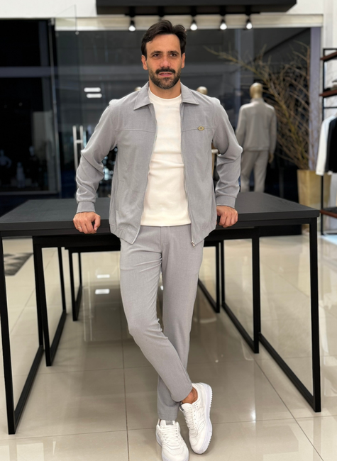 - 1x Casaco Alfaiataria Tradicional Cinza Claro.